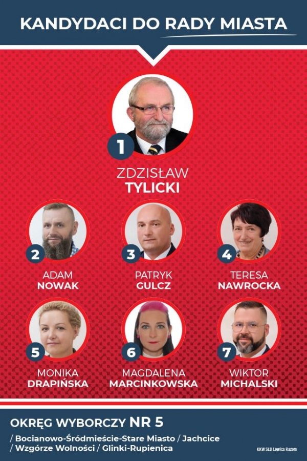 Prezentujemy kandydatki i kandydatów startujących w ramach Koalicyjnego Komitetu Wyborczego SLD Lewica Razem do Rady Miasta Bydgoszczy, kandydatkę na urząd prezydenta Bydgoszczy oraz listę do Sejmiku Wojewódzkiego w okręgu nr 1 - Bydgoszcz.