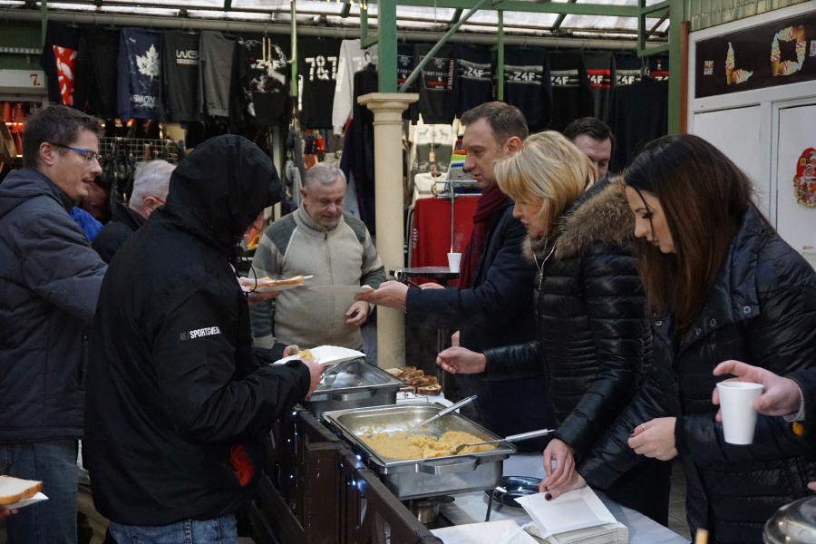 Każdego roku w Wigilię działaczki i działacze SLD przygotowują na Zielonym Rynku tradycyjny świąteczny poczęstunek dla łodzian. Na mieszkańców czekają typowe, wigilijne przysmaki takie, jak kapusta z grochem, czerwony barszcz czy pierogi.
