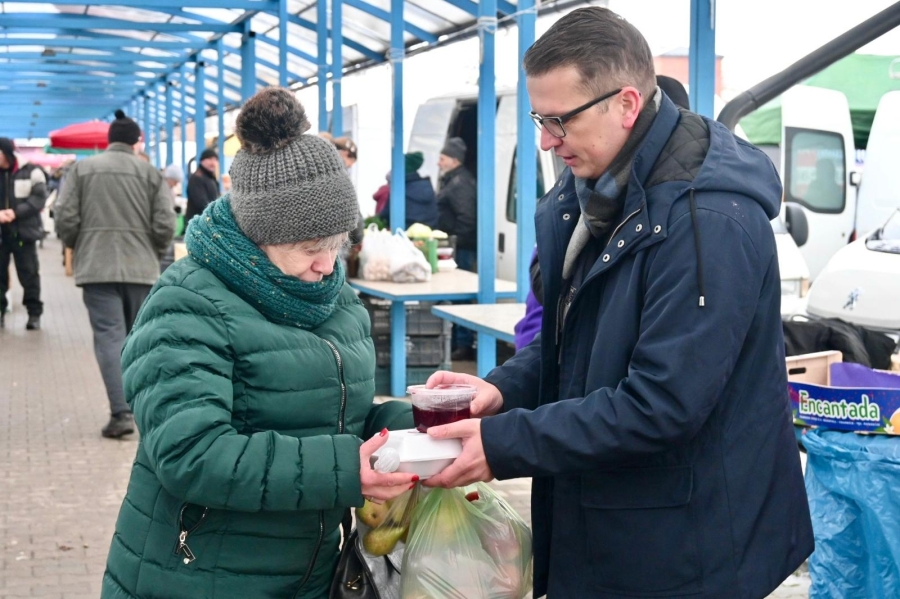 "My kolędować nie będziemy, natomiast dzisiaj, tak symbolicznie, napełniamy ten talerz, który każdemu z nas może pomóc odciążyć trochę budżet domowy i rozmawiamy z mieszkańcami naszego województwa, czy w Rawie Mazowieckiej, czy w Skierniewicach. Czasami słyszymy głosy komentarza, że moglibyśmy coś robić lepiej i bardziej wpływać na obecnie rządzących, którzy ignorują potrzeby takich ludzi, jak tutaj na targowisku. Dlatego apelujemy z tego miejsca, również do rządzących z PiS, przestańcie się wygłupiać, wprowadźcie zmiany dotyczące sądownictwa w Polsce i odblokujcie te pieniądze z KPO, te pieniądze to mniejsza inflacja, to mniejsze rachunki, także na takich targowiskach" - podkreślił Grzegorz Majewski, Sekretarz Łódzkiej Rady Wojewódzkiej.