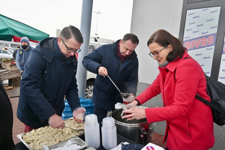 "To już stało się pewnego rodzaju naszą tradycją lewicową, że po prostu dzielimy się posiłkiem. W Łodzi dzielimy się już od kilkunastu lat, ale kilka lat temu rozpoczęliśmy taką akcję w całym województwie łódzkim. W poprzednich latach byliśmy w Zduńskiej Woli, Sieradzu, Piotrkowie Trybunalskim, Tomaszowie Mazowieckim i innych miastach, a dzisiaj naszą wyprawę zaczęliśmy od Skierniewic, a teraz jesteśmy w Rawie Mazowieckiej i będziemy jeszcze w Tomaszowie Mazowieckim. Dzielimy się posiłkiem, który składa się z ciepłego barszczu z uszkami, wegetariańskiej kapusty z grochem, pierogów z kapustą i grzybami, a także słodkiego ciasta. Chcemy tym też wskazać na pewien problem. Problem ubóstwa, który rozpowszechnia się w Polsce. Z raportu wynika, że poziom ubóstwa w Polsce rośnie. Chcemy uczulić wszystkich tych, którzy mogą sobie pozwolić na to, żeby podzielić się posiłkiem lub czymkolwiek innym, chociażby dobrym słowem, chociażby jakimś prezentem, żeby również dzielili się z innymi, bo dzielenie się daje radość nam wszystkim" - stwierdziła posłanka Anita Sowińska.
